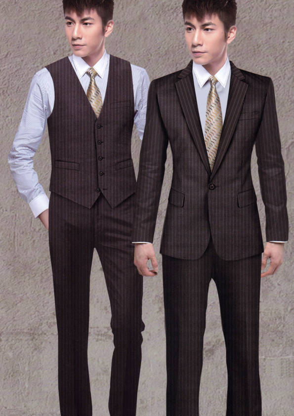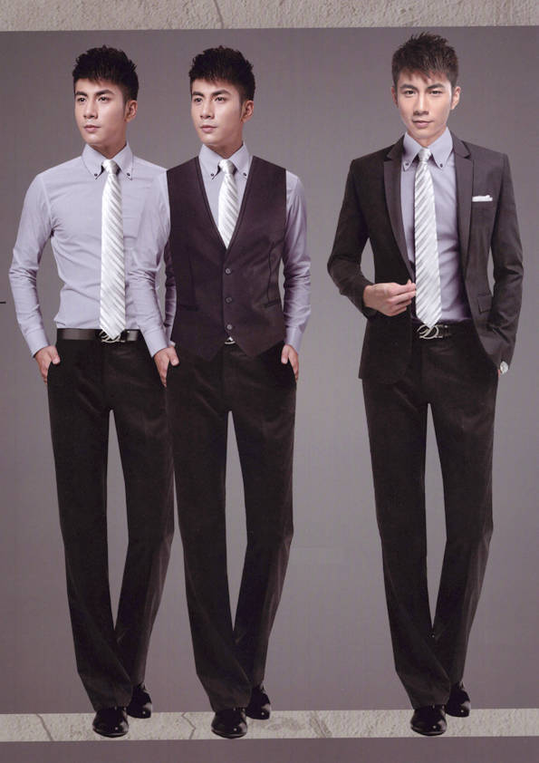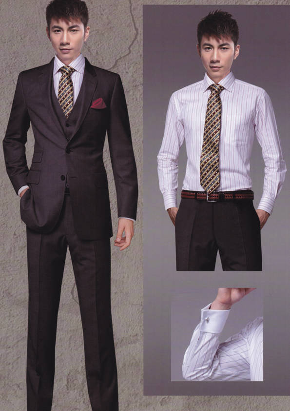 西裝又稱作“西服”、“洋裝”。西裝是一種“舶來文化”,在中國,人們多把有翻領(lǐng)和駁頭,三個衣兜,衣長在臀圍線以下的上衣稱作“西服”,這顯然是中國人民對于來自西方的服裝的稱謂。西裝通常是公司企業(yè)從業(yè)人員、政府機(jī)關(guān)從業(yè)人員在較為正式的場合男士著裝的一個首選。西裝之所以長盛不衰,很重要的原因是它擁有深厚的文化內(nèi)涵,主流的西裝文化常常被人們打上“有文化、有教養(yǎng)、有紳士風(fēng)度、有權(quán)威感”等標(biāo)簽。