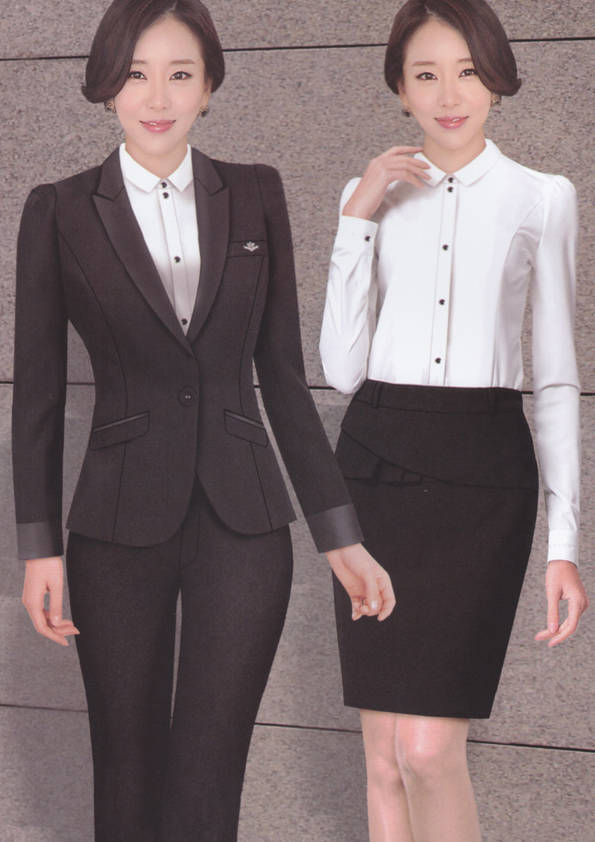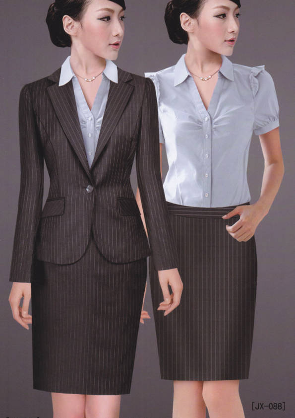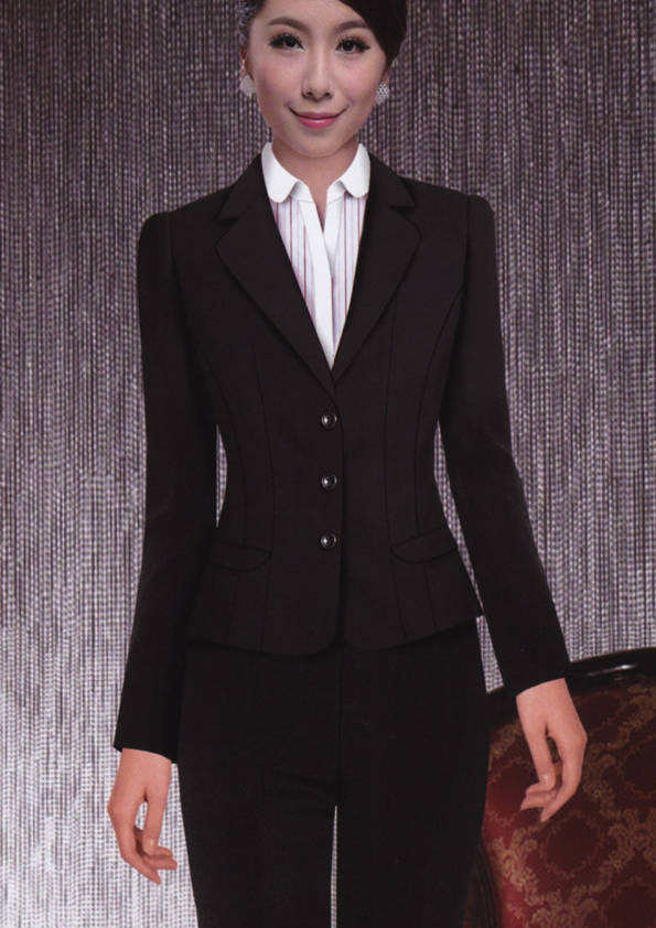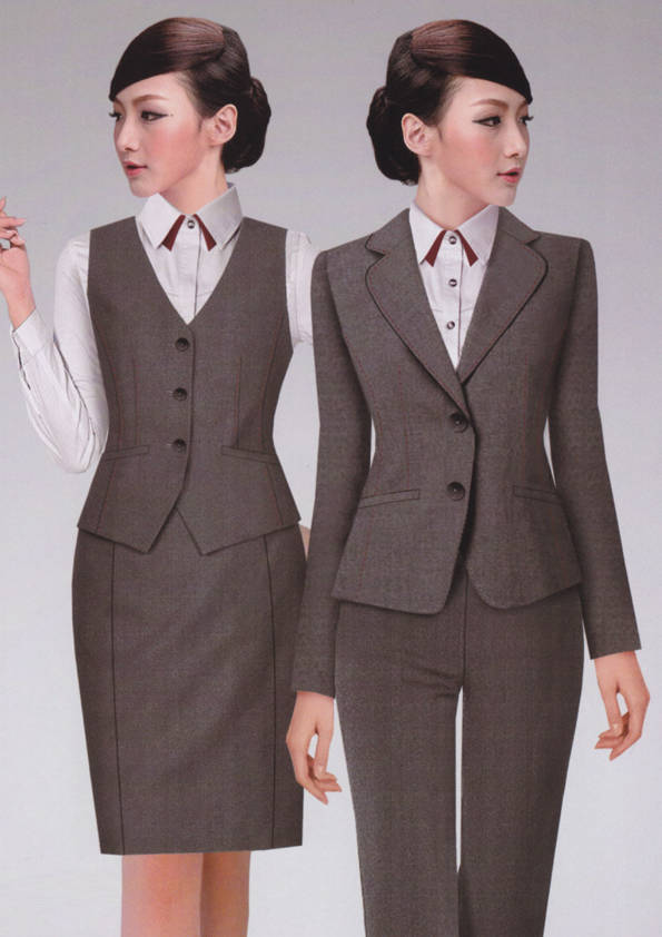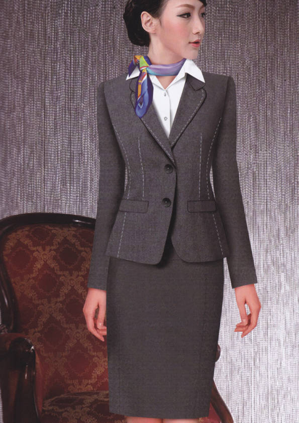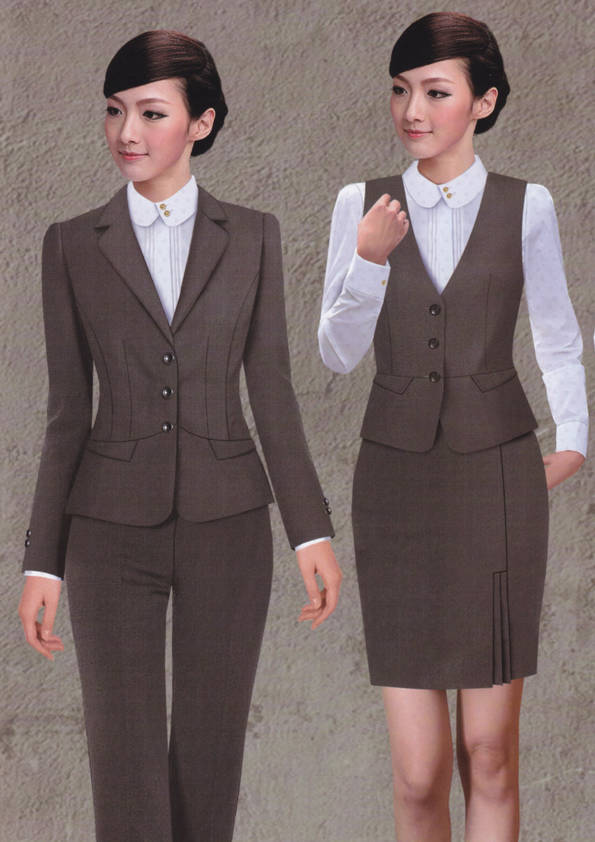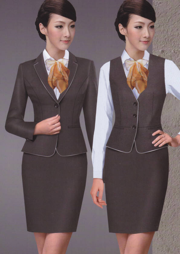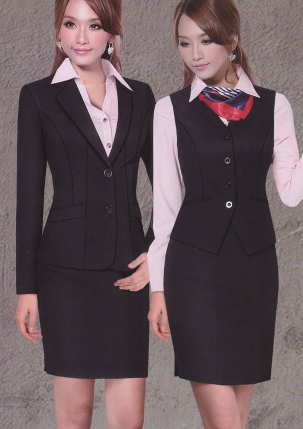 女式正裝是以西服套裝為準(zhǔn),以西褲、裙或西服套裙等在正式,嚴(yán)肅場所的著裝。在這三種類型中,每一種都要考慮其顏色和面料。而西服套裙是女性的標(biāo)準(zhǔn)職業(yè)著裝,可塑造出強有力的形象。女性的職業(yè)服裝比男人更具個性,最佳顏色是黑色、藏青色、灰褐色、灰色和暗紅色。精致的方格、印花和條紋也可以用于正式場合。