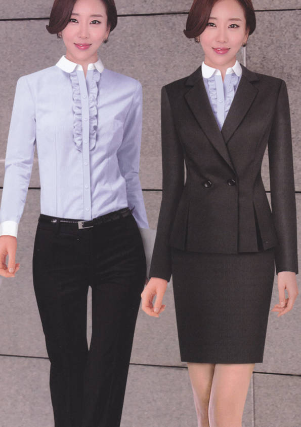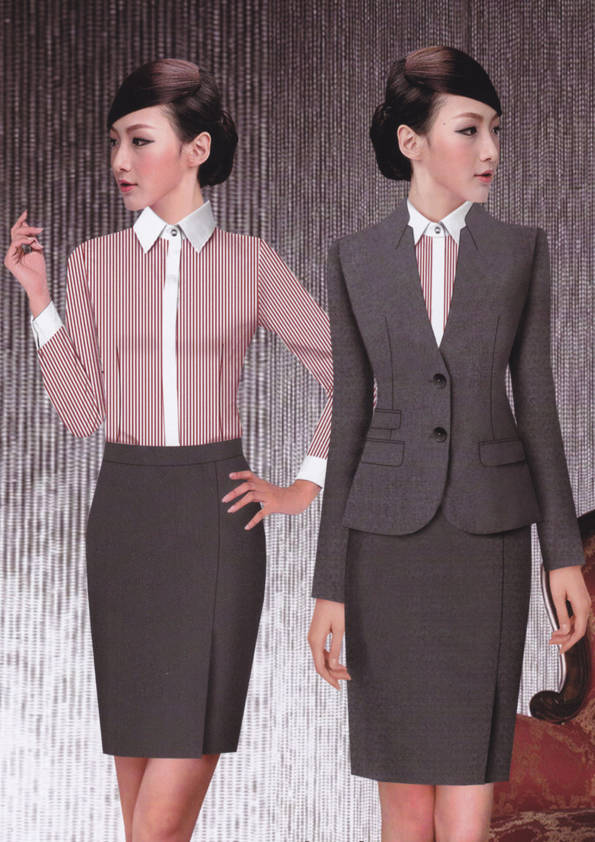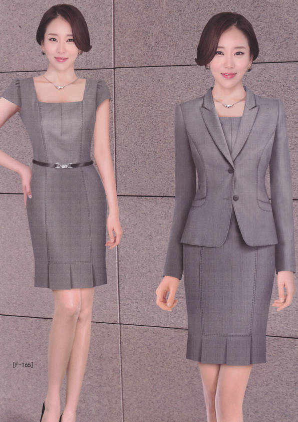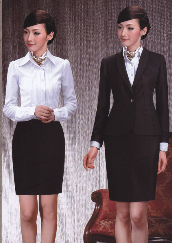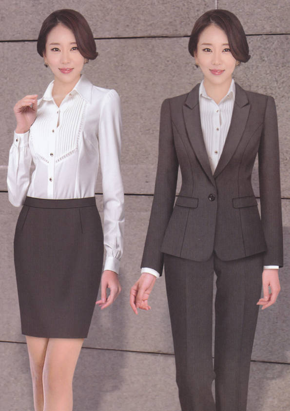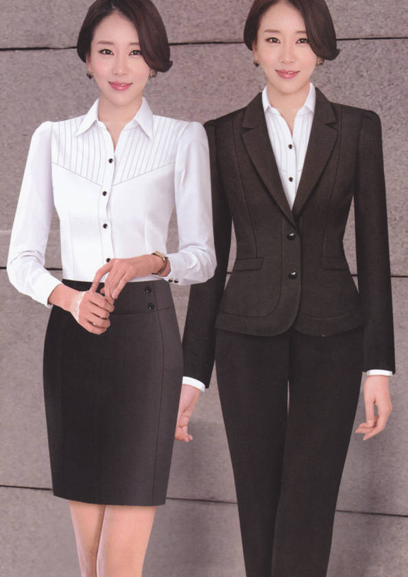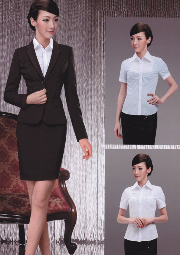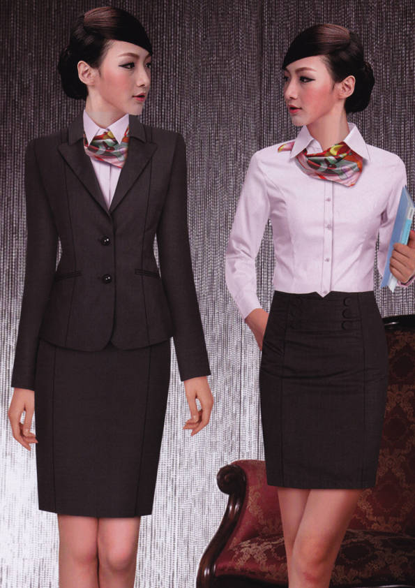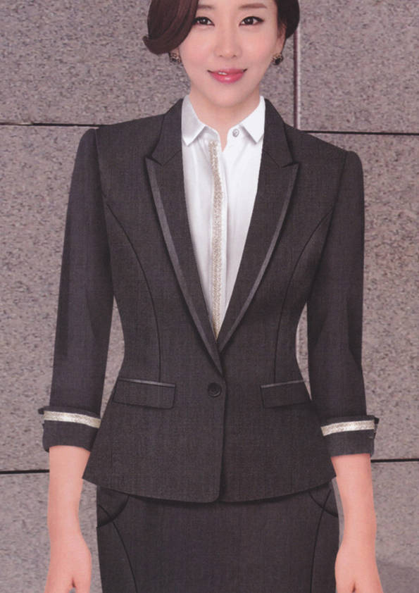 女式正裝是以西服套裝為準(zhǔn),以西褲、裙或西服套裙等在正式,嚴(yán)肅場所的著裝。在這三種類型中,每一種都要考慮其顏色和面料。而西服套裙是女性的標(biāo)準(zhǔn)職業(yè)著裝,可塑造出強有力的形象。女性的職業(yè)服裝比男人更具個性,最佳顏色是黑色、藏青色、灰褐色、灰色和暗紅色。精致的方格、印花和條紋也可以用于正式場合。