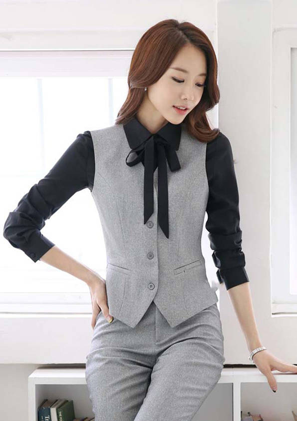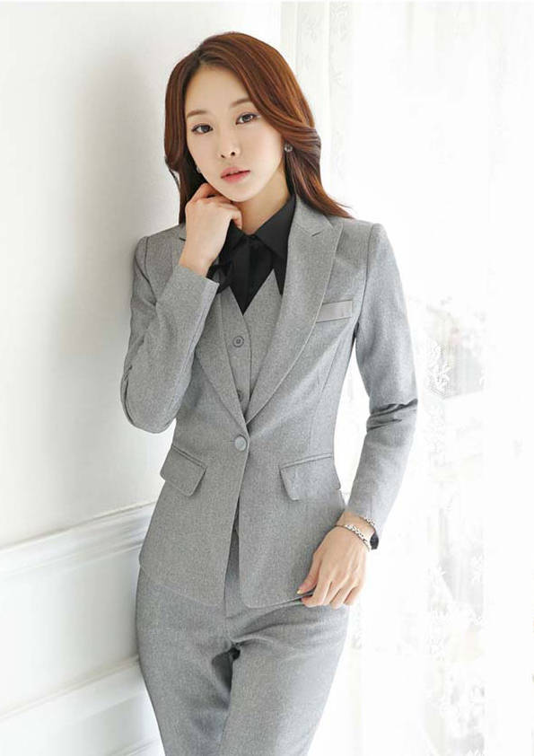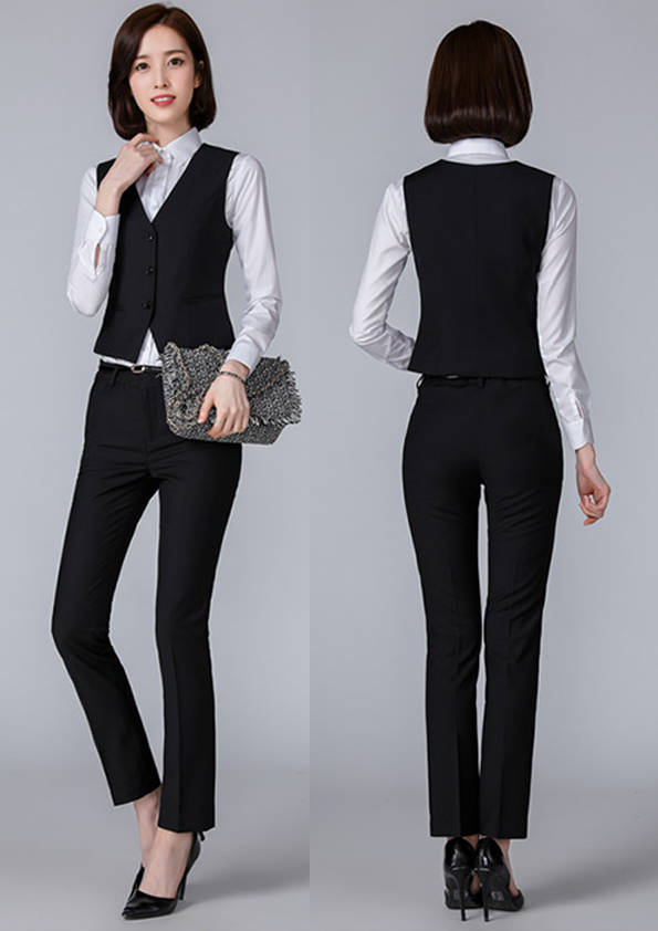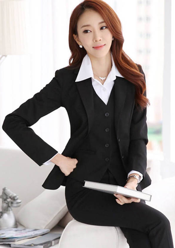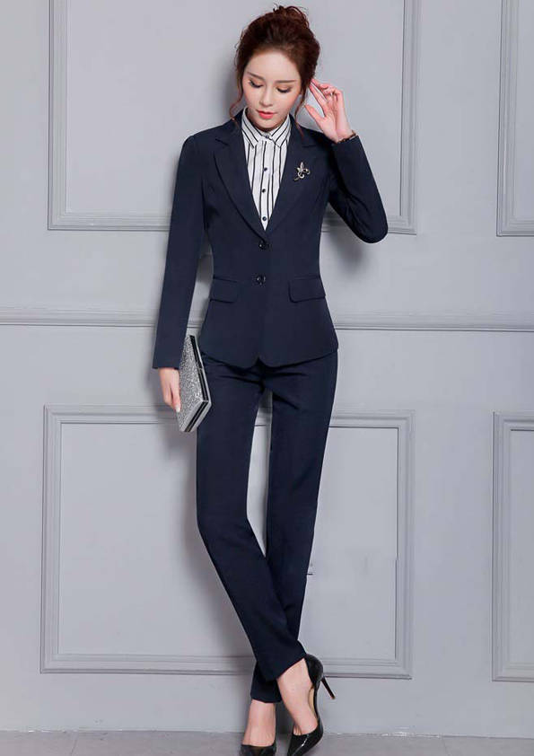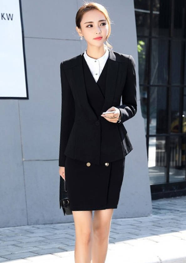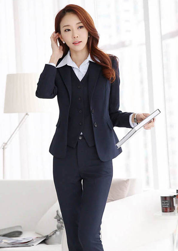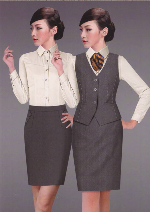 女式正裝是以西服套裝為準(zhǔn),以西褲、裙或西服套裙等在正式,嚴(yán)肅場所的著裝。在這三種類型中,每一種都要考慮其顏色和面料。而西服套裙是女性的標(biāo)準(zhǔn)職業(yè)著裝,可塑造出強有力的形象。女性的職業(yè)服裝比男人更具個性,最佳顏色是黑色、藏青色、灰褐色、灰色和暗紅色。精致的方格、印花和條紋也可以用于正式場合。